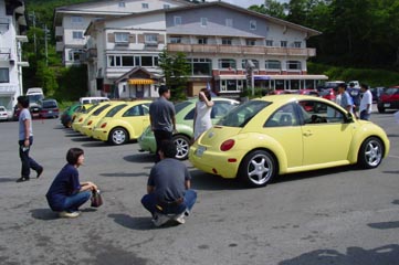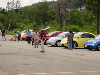 走行班が戻ってきて、一の瀬駐車場に整列していましたところ、ニュービートルな皆さんが、続々とやってまいりました。