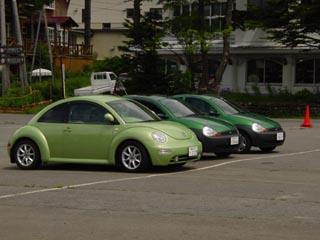 ![]() 手前の黄色いクルマがNB管理人ひらっちさんのビートル ワタクシ、試乗させていただきました |