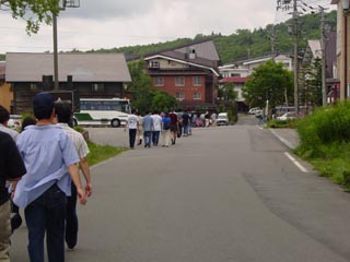 ![]() 一の瀬駐車場からヴィラ一の瀬さんに向かう一行 |